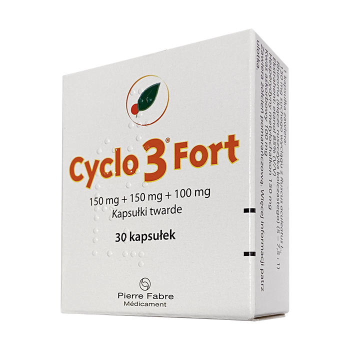Cyclo 3 Fort отпускается без рецепта. В упаковке 30 капсул. Производитель препарата — французская транснациональная фармацевтическая и косметическая компания Pierre Fabre Médicament со штаб-квартирой во французском городе Кастр.
