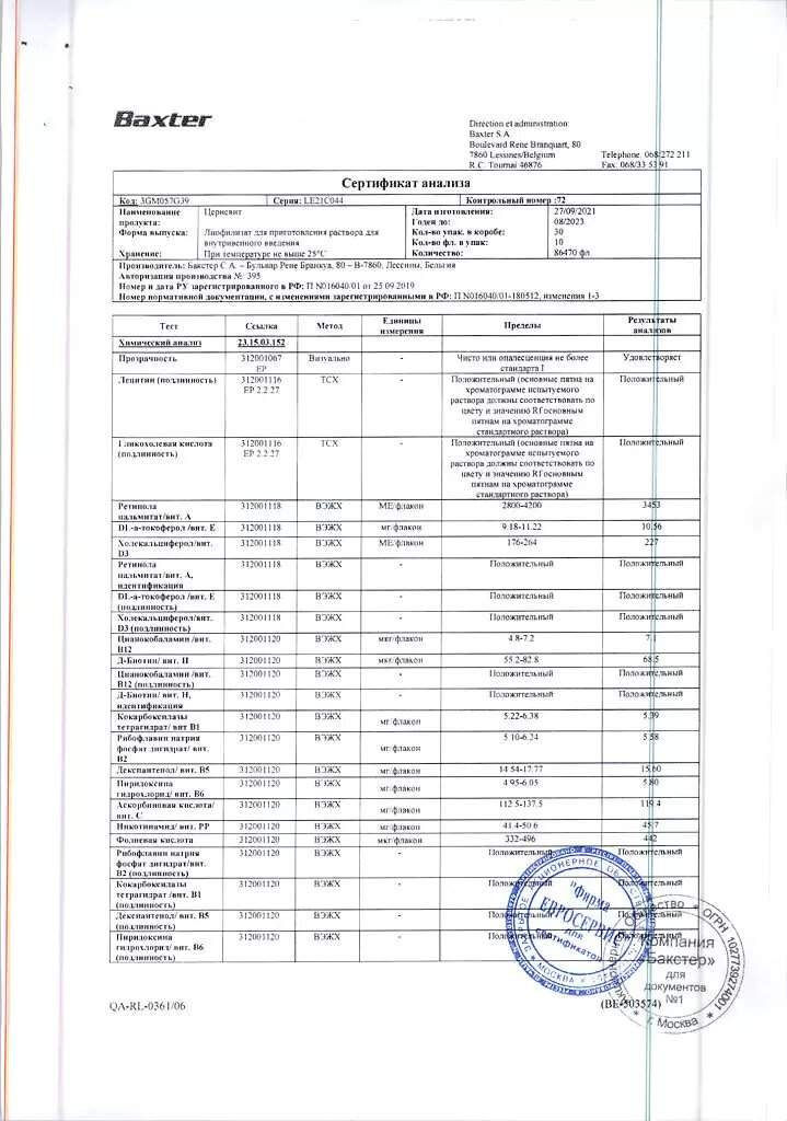Препарат представляет собой сбалансированную комбинацию всех витаминов, необходимых для обмена веществ взрослых и детей старше 11 лет, за исключением витамина С. Они комбинируются в физиологической мицеллярной системе, специально разработанной для включения в состав внутривенных инфузий.