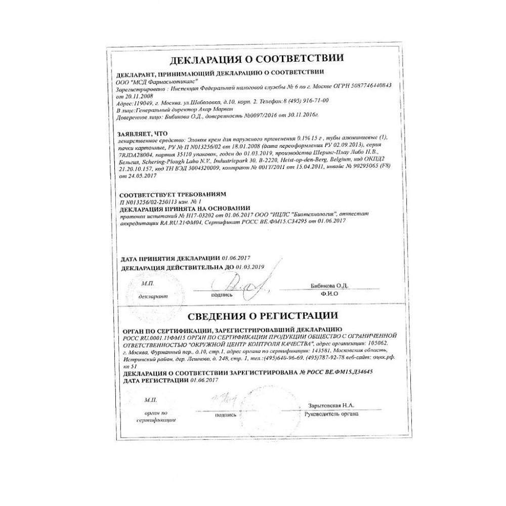 Противопоказания. Нельзя использовать крем Элоком в случае гиперчувствительности к одному из составляющих ингредиентов. Элоком нельзя использовать, если пациент страдает от туберкулеза кожи, розацеа, атрофии кожи, зуда в области ануса или половых органов, бактериальных инфекций кожи. Реакции от вакцинации также являются ограничением к использованию крема Элоком.