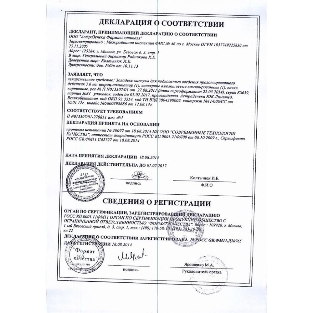 Противопоказания. Применение препарата Золадекс практически не имеет противопоказаний, кроме индивидуальной непереносимости компонентов лекарственного средства. Также запрещено принимать инъекции Золадекс 3,6 в период беременности и лактации и детям до 18 лет.