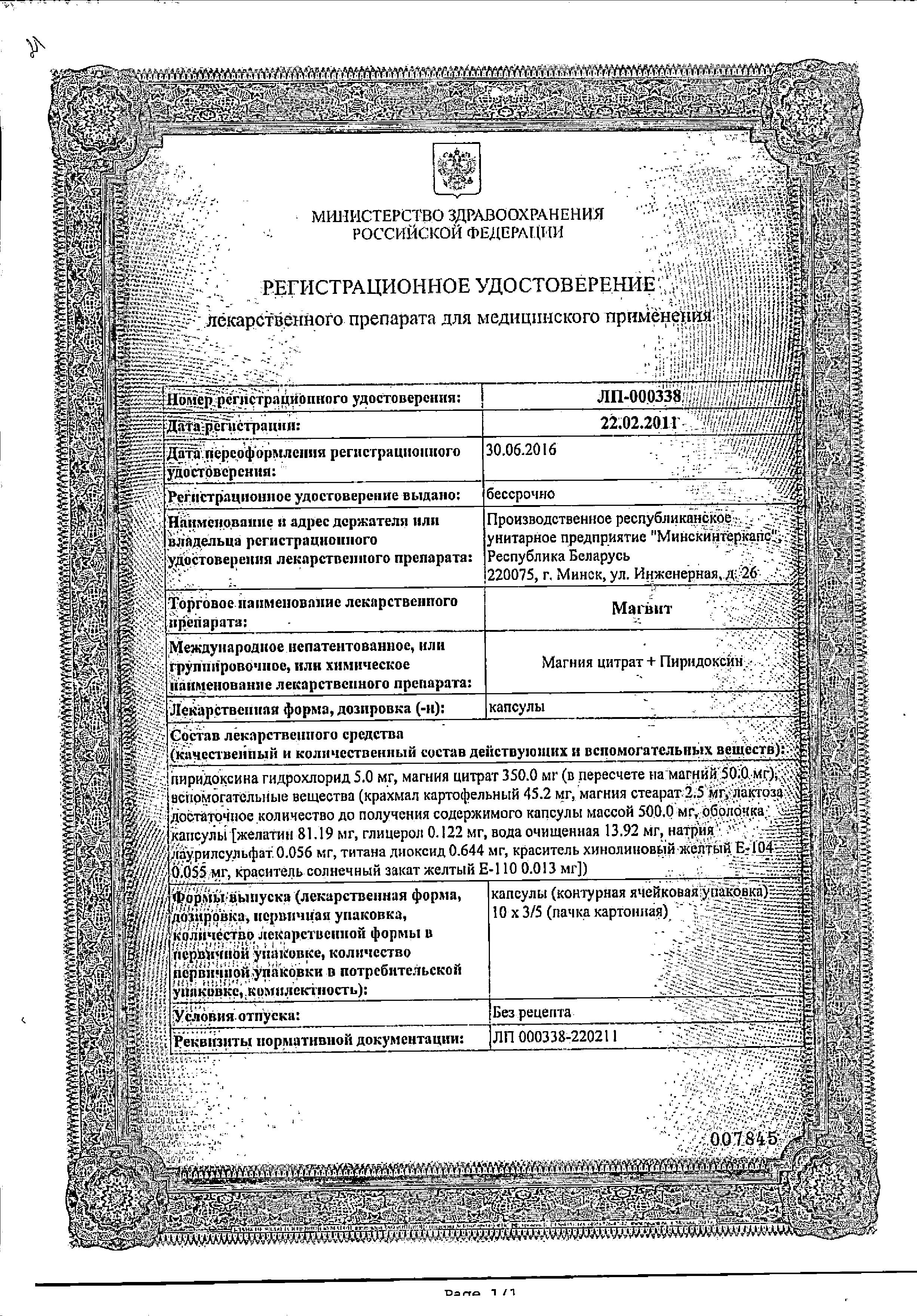 При одновременном применении Магвита с пероральными тетрациклинами промежуток между приемом этих препаратов должен быть не менее 3 часов.