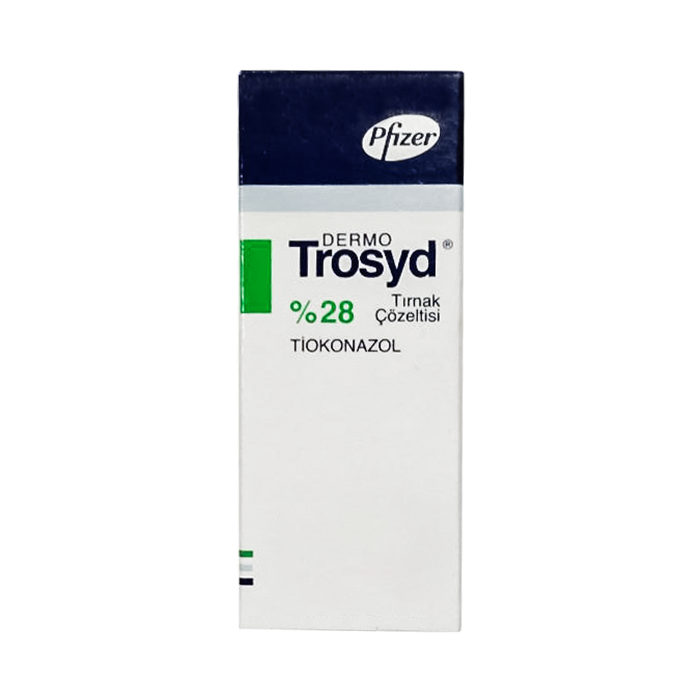Трозид (Trosyd) благодаря содержанию Тиоконазола, который препятствует развитию грибковых инфекций, останавливает процессы синтеза оболочечного стерина, фосфолипидов и триглицеридов. В процессе регулярного использования активное вещество оказывает непосредственное влияние на мембраны клеток грибковых микроорганизмов, а также препятствует их распространению по здоровым тканям ногтевой пластины. Препарат используется как лак для ногтей. После нанесения он образует твердую пленку, помогая при этом активным веществам в течение длительного времени проникать под слои ногтевой пластины.