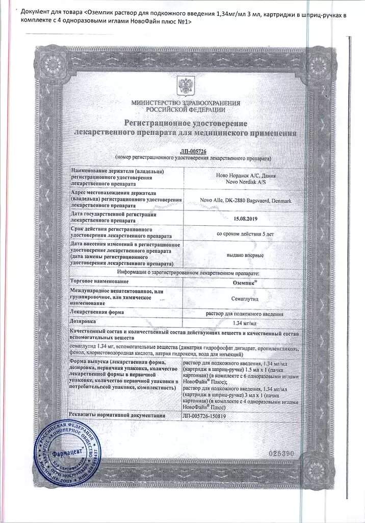 Сертификаты Оземпик