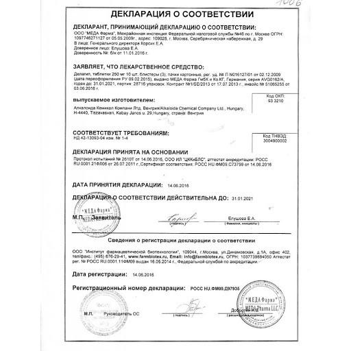 Применение. Таблетки Делагил принимают после еды. Для профилактики малярии назначают по 500 мг в первую неделю 2 раза, затем — 1 раз в один и тот же день недели. При лечении малярии в 1-й день однократно принимают 1 г, через 6–8 ч — 500 мг; на 2-й и 3-й день лечения — по 750 мг ежедневно в один прием. При ревматоидном артрите рекомендовано принимать по 250 мг 2 раза в день в течение 7 дней, затем по 250 мг ежедневно в течение 12 мес. При системной красной волчанке: по 250–500 мг ежедневно.