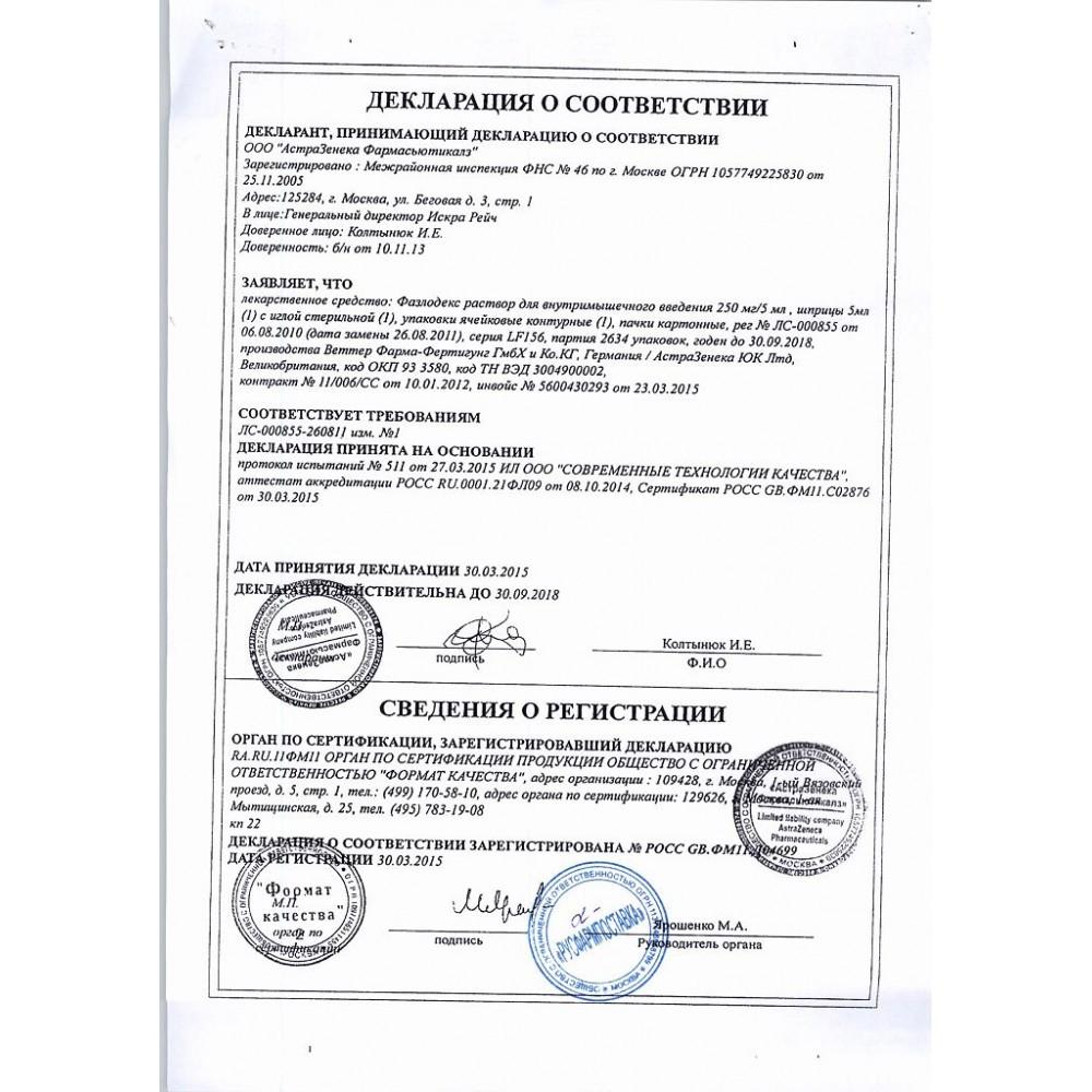 Предварительно заполненный шприц Фазлодекс предназначен для одноразового применения. Не допускается повторное использование игл или шприцов, а также хранение раствора во вскрытых шприцах. Если после введения рассчитанной специалистом дозы в шприце остался препарат, следует его утилизировать.