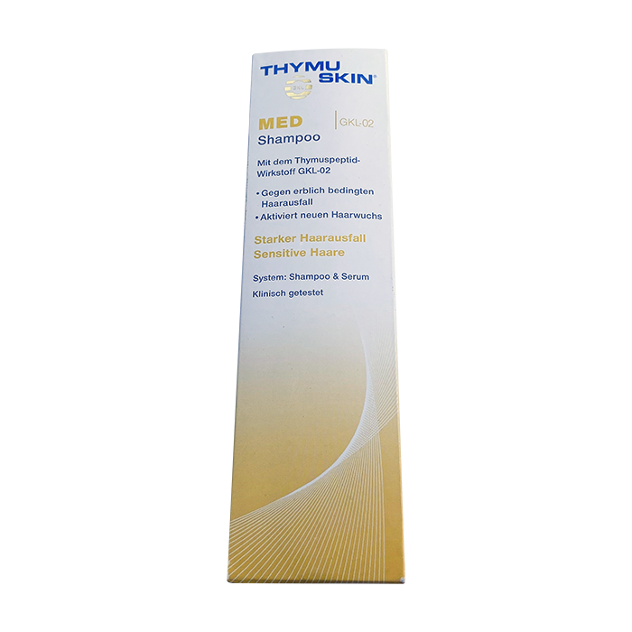 Успех Thymuskin против выпадения волос у женщин и мужчин основывается на биологической активности комплекса GKL-02, пептидов тимуса без бычьих компонентов, аналогичных общему экстракту тимуса. Он усиливает и активирует иммунную защиту волос и клеток кожи.