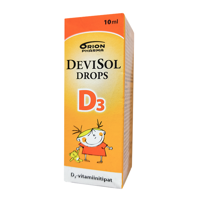 В 5 каплях DeviSol Drops содержится: Витамин D3 - 10 мкг (400 МЕ).