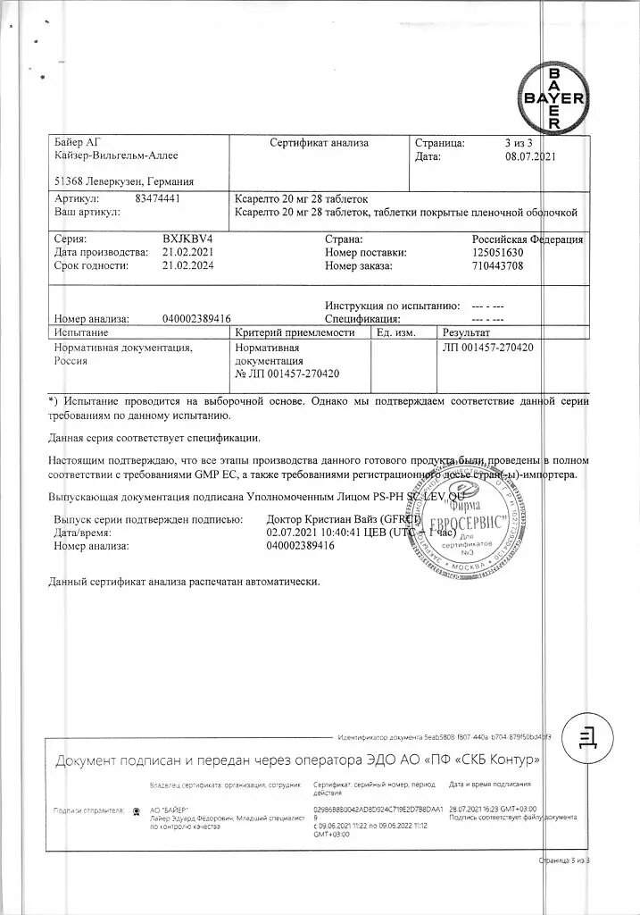 Лечение: специфический антидот ривароксабана неизвестен. В случае передозировки для снижения всасывания ривароксабана можно использовать активированный уголь. Учитывая интенсивное связывание с белками плазмы крови, ожидается, что ривароксабан не будет выводиться при проведении диализа.